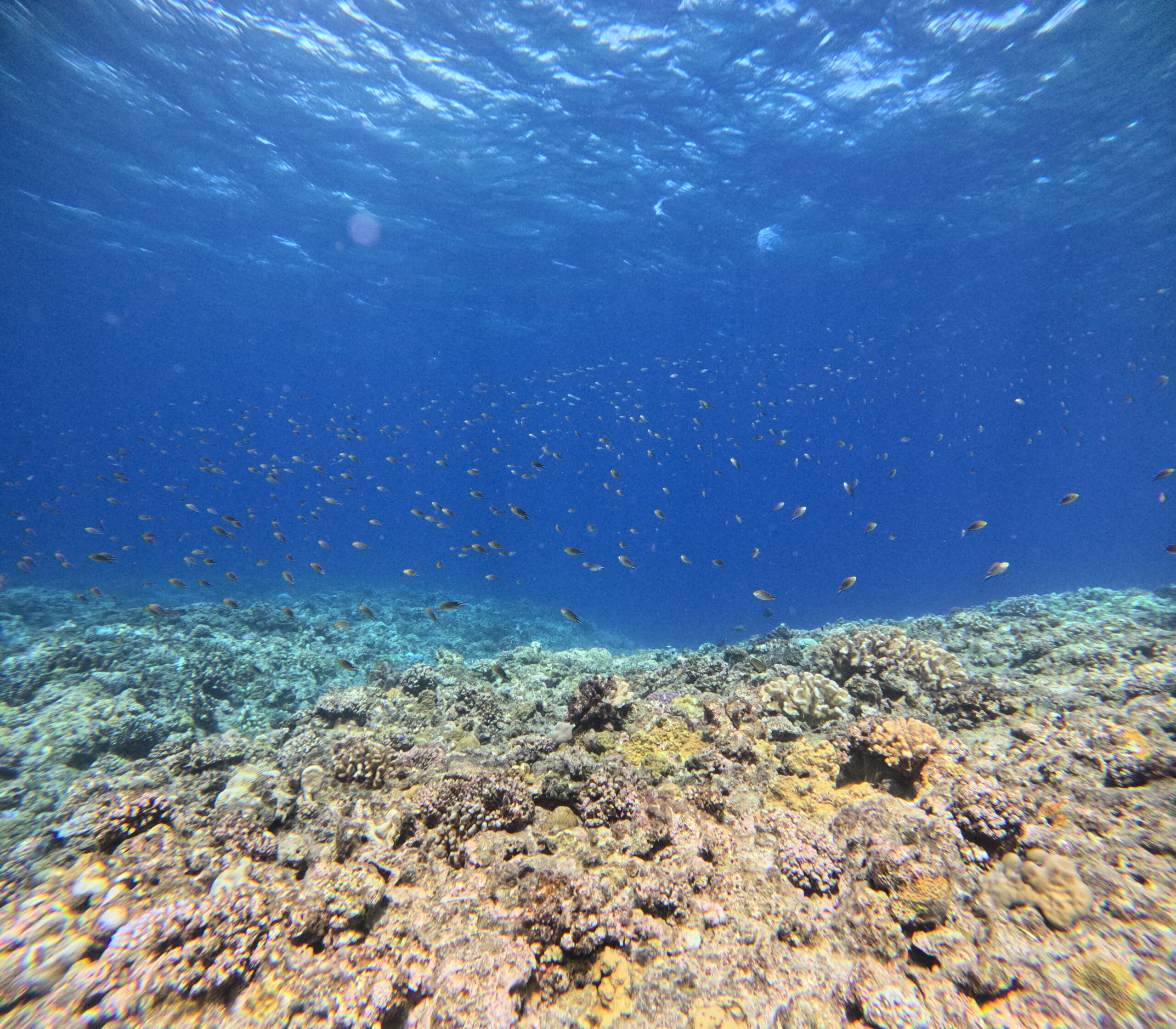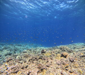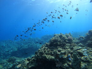 浅い所にオキナワスズメダイがいっぱい!